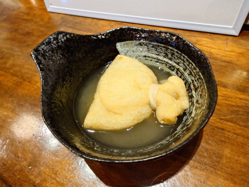 お通しの餅巾着出しが効いて美味しい。