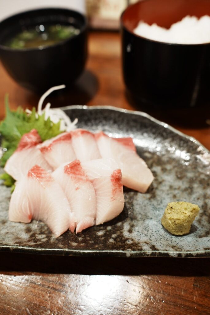 最後は寒ブリの刺身を白米で頂いて大満足。